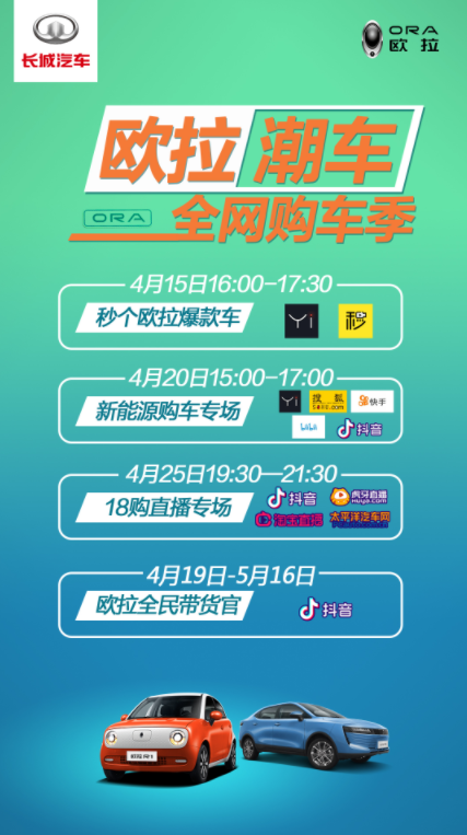 在刚刚过去的三月,欧拉凭借精心打造的“电商云团购”系列活动,成功赢得人气销量双丰收——不仅短短两小时直播就吸引超165万网友围观,更斩获累计订单过千笔。为了圆更多消费者的购车梦,此次欧拉再度发力,不仅推出电商专属豪礼,更联手权威媒体平台整合更多玩法,全情打造“欧拉潮车 全网购车季”,可谓正是买车好时机。即日起至4月30日,期间预订或购买欧拉全系车型(除欧拉iQ出行版)的用户,最高可获得总价值超万元的三重购车大礼。