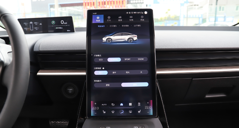 3、大尺寸纵置中控屏的界面UI设计,操作逻辑好评,屏幕功能区直观简洁,基本都是一级菜单,贴近大多数人的操作习惯。此外,智能语音对话很轻松自然,并且它还能对粤语、四川话等方言进行识别;